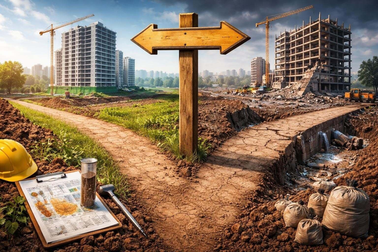 Welche Risiken entstehen ohne Bodenanalyse? Erfahren Sie, wie fehlende Bodengutachten zu Bauschäden, Kostenexplosionen und Verzögerungen führen.