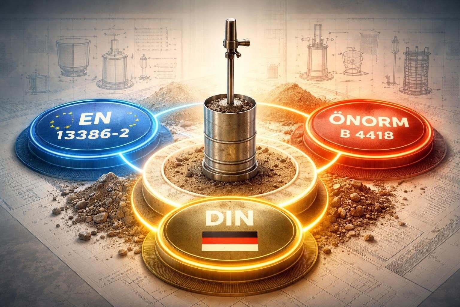Aktuelle Normen für Proctorversuche: ÖNORM B 4418, EN 13286-2 und nationale Regelwerke im Überblick. Praxiswissen für Baustoffprüfung.
